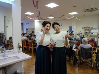お話によりますと、こちらの施設への訪問は、 2年ぶりになるそうで、 月日の経つのは早いものでございます。 お天気に恵まれ、豊中まで「いざ出発!」です。 ![]() ![]() わたくしたち、ボランティア演奏に寄せて頂くことも だいぶ慣れてまいりましたので、 準備するのも、とても早くなりました。 ![]() ![]() ![]() 準備が整いますと、 ご用意頂いたお茶で ちょっとくつろぎタイムです。 ![]() ![]() ![]() 本日の演目は ♪ 南国土佐をあとにして ♪ 青い山脈 ♪ りんごの唄 ♪ 憧れのハワイ航路 ♪ 小さい秋みつけた ♪ 花笠音頭 ![]() ![]() ![]() そして最後には、12月ということで ♪ クリスマスメドレー を演奏させて頂きました。 演奏者の私たちも、 クリスマスバージョンに変身です! ![]() ![]() ![]() 45分のお時間を頂戴し、 いろいろ一緒に楽しめたと思います。 有難うございました。 ![]() |