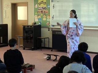 この日は私の母校、 滋賀県東近江市立布引小学校へ お箏の体験学習に寄せて頂きました。 先日の船岡中学校に続き、 また母校である小学校へ 関わることができ嬉しい限りです。 今回の学習では 5.6年生の生徒の皆さまが 体験してくださいました。 初めにお箏ならではの曲 『春の海』を演奏させて頂きました。 ![]() 題名は知らなくても、 「あっ、なんか聞いたことある!」という感じで、 なんとなくご存知の生徒さんも多かったです。 次に『世界に一つだけの花』も 演奏させて頂きました。 ![]() 普段聞く曲ですが、 お箏で弾くとまた違う感じに聞こえたようで、 お箏の音色はなんだか癒される、 という印象だったようです。 そして、体験の時間では座る位置やお爪のはめ方、 弾き方などをお教えして、音を出してもらいました。 ![]() 初めて弾く生徒さんも多く、 楽譜1行分のフレーズを上手に弾けたら、 皆で拍手して喜んでおられました。 ![]() 一生懸命弾かれる姿がとても印象的で、 私自身も楽しく過ごさせて頂き、 あっという間の3時間でした。 生徒の皆さまが、こうしてお箏に触れ、 興味を持って頂けて本当に嬉しく思います。 このようなご機会を与えてくださいました校長先生、 また楽器などを運ぶお手伝いを頂きました先生方、 本当にお世話になりましてありがとうございました。 教師 山階由紀美 |