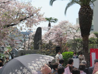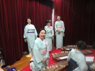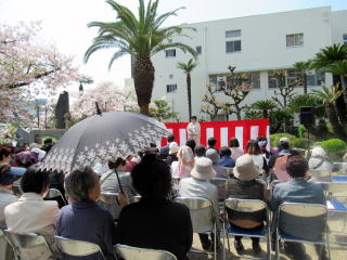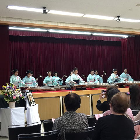 今年の桜の開花は、 例年よりも1週間ほど早かったそうですが、 お天気が続いたため、 長くお花見を楽しむことができました。 そして今日も暑いくらいの お花見日和となりました。 毎年、出演させて頂く『彩桜忌』 今年はこの季節にぴったりの曲、 『桜・七変化』を演奏させて頂きました。 ![]() ![]() 午前中は、いつも準備を終えてから 式典にも参加させて頂きます。 ![]() ![]() ![]() 式典は会館の直ぐ裏にございます お寺にて開催されます。 桜の時季がそろそろ終わろうとしておりますが、 この日を迎えるまで、頑張って花を 咲かせてくれていたかのように美しいです。 ![]() ![]() 式典が1時間ほどで終わりましたら、 午後からは会館内に戻り、 ステージが控えております。 演奏直前、緞帳が降りた状態で 記念撮影です。 ![]() ![]() ![]() 少人数での演奏でしたが、 楽しく、そして呼吸も合い、 良い演奏が出来たと思います。 演奏が終わりましたらすぐさま後片付けをして、 宗家先生より、出演者全員 おうどんをご馳走になりました。 ![]() 2日前開催された 桜コンサートの疲れも感じさせない、 元気なメンバーでした。 ![]() そして最後に、山口典子先生と一緒に 写真を写して頂きました。 ![]() |