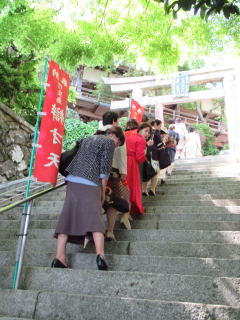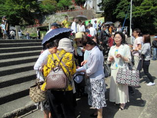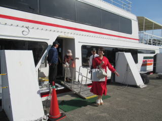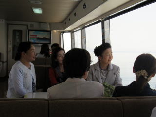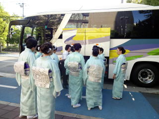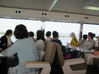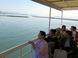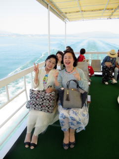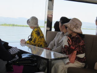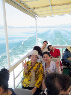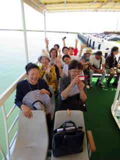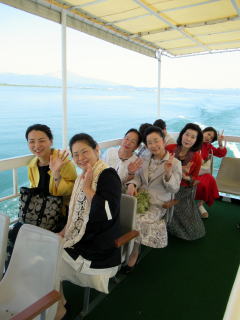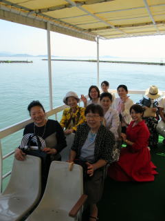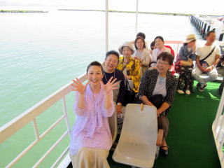 ゴールデンウイークも終盤になりましたが この日は、予てよりご依頼を頂いておりました 滋賀でのコンサートに、 バスをチャーターし、淀の会で出かけました。 ![]() ![]() ![]() ![]() 朝から絶好のお出かけ日和。 本日のコンサート、午前中には終わる予定でしたので 「せっかく滋賀まで出かけるのだから…」と コンサート終了後に、プチ旅行を計画しました。 そんなこともあり、本日の参加者が いつもよりワクワクして見えるのは気のせい? さて、ここでバスに乗車したところで デジカメを紛失!!! (これは大変です(-_-;)) 皆で、あらゆるところを探しましたが見当たらず…。 残念なことに、本日の写真はあきらめました。 無事に滋賀の会場に到着し、ステージも終えて バタバタと時間が過ぎ、 終演後は、ご用意頂いた控室にて着替えをすませ、 午後からのプチ旅行に出発です \(^o^)/ と、ここで楽器類をバスに積み込んでおりましたら デジカメが出てきましたよ~ \(^o^)/ 楽器の備品など、小物を入れる袋に 紛れ込んでおりました。 良かったです。 早速バスは長浜に向けて出発です。 とりあえずは、「お疲れ様~っ!」ということで ランチ前に車内で乾杯です。 ![]() ランチは、近江牛で有名な、 長浜のお食事処で頂きます。 ![]() ![]() ![]() ![]() 今日は午後からの旅行ですし ゴールデンウイークということもあり、 帰りの渋滞も予想されますので 早めの帰阪を考えております。 そんなこともあり、 ランチもゆっくり時間をとることが出来ません。 この後の竹生島への クルージングの時間がございますので 長浜黒壁観光も、そこそこに切り上げます。 ![]() ![]() ![]() ![]() ![]() ![]() ![]() ![]() ![]() お待ちかね(*^-^*) 竹生島に向けてのクルージングです。 竹生島へは、 ここ長浜からと彦根からの 航路がございます。 ![]() ![]() ![]() ![]()