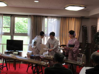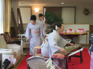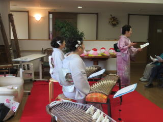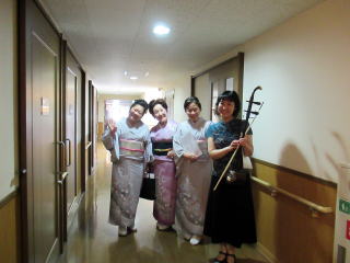 今回で4回目となりました こちらの施設様への慰問。 お客様もお馴染みのお顔ぶれだったり、 初めてお見かけする方や、 いろいろでございましたが、 以前よりお聴きくださる皆様は、 わたくしたちの顔も覚えていてくださって 懐かしみ、喜んでくださいました。 午後2時の開演時間までは、 ご用意頂いた控室で、 和やかな雰囲気の中、 それぞれにゆったりと準備を致します。 ![]() ![]() ![]() ![]() ![]() 本日の演目では 『花笠音頭』も披露致しますので、 花笠を準備します。 ![]() ![]() では頑張って演奏してまいります♪ ![]() ![]() ![]() <本日のプログラム> ♪ 南国土佐をあとにして ♪ 青い山脈 ♪ さくらさくら ♪ 憧れのハワイ航路 ♪ 心のうた ・四季のうた ・ふるさと ・幸せなら手をたたこう ♪ 花笠音頭 ![]() ![]() ![]() ![]() ![]() ![]() ![]() ![]() |