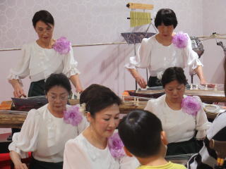昨年に引き続き、 地元商業施設内での演奏のご依頼を頂き、 今年も淀の会は 『新春邦楽コンサート』をさせて頂きました。 ![]() ![]() ![]() 昨年、経験させて頂いておりますので どこをどのように使わせて頂いたらよいのか、 楽器の搬入順路であったりと 進行や準備を、とてもスムーズに 行うことが出来ました。 ![]() ![]() ![]() ![]() ![]() ![]() ![]() 準備も整ってまいりまして 皆、穏やかに笑顔で応えています。 ![]() ![]() ![]() ![]() 本番も近づいてまいりまして、 衣装の着替えも済ませます。 ![]() ![]() 本日の演奏でお世話になります 尺八の先生方です。 いつも淀の会にご尽力賜りまして、 誠に有難うございます。 ![]() 開演に先立ちまして、控室では 宗家先生よりご挨拶を頂戴し、 皆で気持ちを一つにし、 気合を入れます!! ![]() ![]() ![]() そして会場では、出演者一同が整列し お客様にご挨拶申し上げます。 いよいよ開幕です! ![]() ![]() ![]() 本日の公演、一曲目は ♪エル・クンバンチェロ ♪ラ・クンパルシータ ♪コーヒー・ルンバ の三曲を、メドレーにてお送りいたします。 ![]() ![]() ![]() 続いての曲は 皆様にもご一緒にお歌い頂ける曲 ♪四季の歌 ♪ふるさと ♪幸せなら手をたたこう ![]() ![]() ![]() そして、クラッシック行進曲メドレーの ♪夢はマーチにのって を演奏致します。 ![]() ![]() ![]() ![]() ![]() ステージは進行しつつ、 舞台袖では、調絃係が セッセと次の曲の調絃をおこなったりと メンバーは休む間もなく、 常に動いております。 ![]() 最後の曲は ♪日本名歌集第一編 この曲の中にも、 皆様のご存じで懐かしい曲が たくさん組み込まれております。 どうぞ一緒にお歌いください。 ![]() ![]() ![]() ![]() ![]() ![]() ![]() 淀の会の演奏プログラムを すべて終了した後は、 会場の皆様がお待ちかね、 『体験コーナー』を設けて、 初めてお爪をはめて頂き、 実際にお箏に触れて頂きます。 小さなお子様からご年配の方まで、 老若男女問わず、多くの方が体験くださいました。 ![]() ![]() ![]() ![]() ![]() ![]() ![]() ![]() ![]() ![]() ![]() ![]() ![]() ![]() ![]() ![]() ![]() ![]() ![]() ![]() ![]() ![]() ![]() ![]() 体験コーナーも 大盛況に終えることが出来まして、 会員一同、大変有意義な一日を 過ごさせて頂くことが出来ました。 ![]() ![]() 新しい年を迎え、 本日で2回目の活動となりました淀の会。 今年も益々頑張りますので、 皆様の応援、どうぞ宜しくお願い致します。 ![]() |
