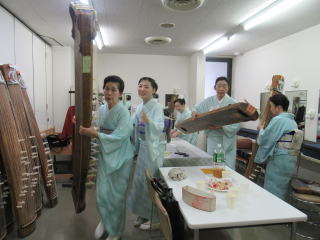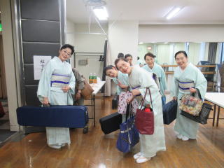 完全にお天気は下り坂… と思っておりました今日の演奏会でしたが 道中、雨に降られることなく 過ごすことができました。 会場は、豊中にございます アクアホール ![]() ![]() ![]() 午後1時30分の開演で、 淀の会のステージは後半の二曲。 比較的ゆっくりできました。 ![]() ![]() ![]() お三絃、そしてお箏の調絃係の皆様は ずっとお仕事に徹してくださっておりましたが。 ![]() ![]() ![]() 本日の演奏会。 淀の会の出演曲一曲目は 『変奏調千鳥の曲』 ![]() ![]() ![]() ![]() ![]() ![]() ![]() ![]() そして二曲目は、 終曲『北海民謡調』で華やかに! ![]() ![]() ![]() ![]() ![]() ![]() ![]() 二曲とも、とても良い演奏ができまして、 出演者一同ホッと胸をなでおろしております。 最後に宗家先生よりご挨拶がございまして、 少し感想を述べあったり… 皆様、有難うございました。 ![]() ![]() ![]() ![]() |