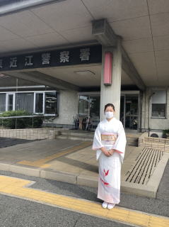 8月27日から滋賀県にも 2度目の緊急事態宣言が発出され、 宣言期間が9月末まで延長となり、 ご依頼いただいた演奏がなくなるのではないかと 心配しておりましたが、 感染予防対策をしっかり取ってくださり、 この日無事開催されることとなりました。 開催にあたりご準備くださいました署員の皆様に、 深く感謝しお礼申し上げます。 ![]() この度、演奏のお話を頂きました 東近江警察署副署長様からは、 「日頃心身ともに緊張の中 仕事をしてくれている署員たちに 少しでも和んでもらいたい」 というお気持ちで、 ご依頼頂いたことを伺いました。 そのような想いに 少しでも応えられるような演奏を心掛けたいと、 少し意気込み過ぎて緊張していたのかもしれません。 ![]() 普段、免許更新などで訪れている東近江警察署ですが、 この日はいつもと違う場所に来たのではないかと思うほど 緊張しながら訪問させて頂きました。 会場は3階の会議室で、 窓を全開にして換気をしながら、 席は十分に間隔をあけ、 約40名の署員の方々がお聞きくださいました。 ![]() 約30分の演奏時間を頂戴しましたので、 お箏について少しお話をしながら 進めさせていただきました。 演奏曲目は ♪ 六段の調 ♪ 春の海 ♪ 花は咲く ♪ 世界に一つだけの花 の4曲です。 最初はお箏ならではの曲をお聴き頂きました。 『六段の調』も『春の海』も名曲です。 ほとんどの方が 「聞いたことがある」 「お正月に流れている曲」と、 ご存知の様子でした。 また『花は咲く』は復興支援の曲ですし、 『世界に一つだけの花』も皆様よくご存知で、 「お箏でこのような今風の曲が聞けて、 また違った感じで良かったです」 「音色がとても心地よくて和みました」 と嬉しい感想を頂戴いたしました。 ![]() 署員の方の中には 育児休暇中の方がお子様をお連れくださり、 お箏に興味津々のご様子で 「指にはめているのは何ですか?」 とご質問くださいました。 少しだけお箏に触れられ、 喜んでいただけたので嬉しかったです。 ご依頼を頂いてから愛美先生には 選曲から演奏、当日の準備、心構えまで しっかり丁寧にご指導いただきまして ありがとうございました。 教師 山階由紀美 |